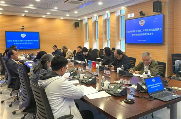 市政协科教委副主任岳鹏主持会议。市政协科教委主任许强、北京第二外国语学院有关负责同志和部分科教委委员参加。