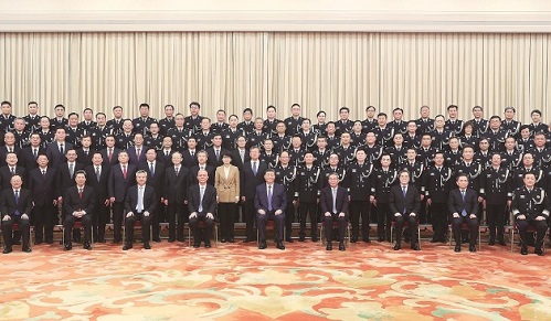 下午4时,习近平等来到人民大会堂西大厅,全场响起热烈掌声。习近平等走到代表们中间,同大家亲切握手,不时交谈,并合影留念。