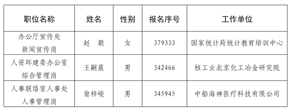 经北京市2026年度考试录用公务员工作有关程序,确定赵毅等3名同志为北京市政协机关拟录用公务员,现按规定予以公示,公示期为5个工作日。公示期间,如对拟录用人员有异议,请向北京市政协人事联络室反映。