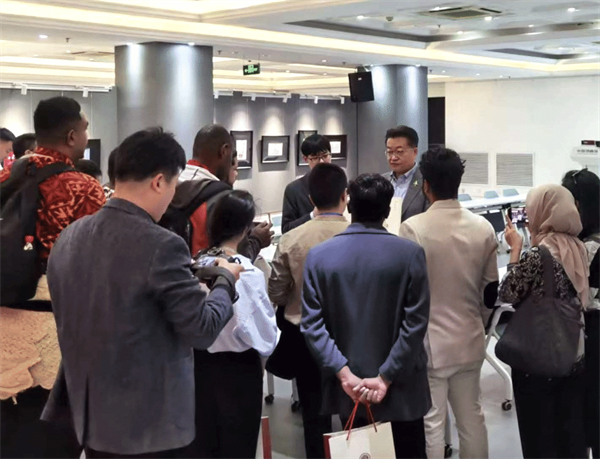 ▲陶冶为到访的国际媒体记者介绍中国漫画教育现状