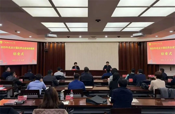 11月21日至23日,北京市委统战部、市工商联在中央社会主义学院举办2025年北京百强民营企业家研修班。市政协副主席、市工商联主席燕瑛出席结业式并讲话,市委统战部副部长、市工商联党组书记严卫群出席开班式、“优化营商环境”政企沟通沙龙并讲话,市工商联党组成员、副主席张晨霖参加,并以“新时代首都工商联工作的实践与探索”为主题进行授课。40余位北京百强民营企业家参加培训。