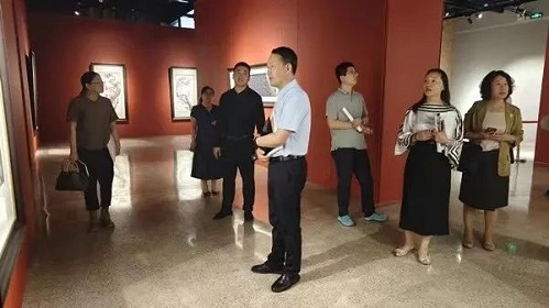 读书沙龙结束后,现场参加活动的委员在智慧长阳美术馆参观“庆祝中国共产党成立102周年书画名家作品展”。