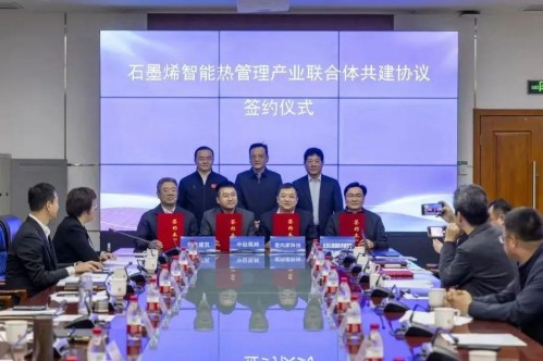 日前,北京先进材料产业促进会前沿材料专委会挂牌,并举行了“北京先进材料产业促进会房山区石墨烯智能热管理产业联合体签约仪式”,房山区政协副主席杨冬立揭牌并致辞。