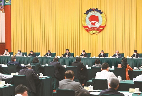 中共中央政治局委员、全国政协副主席石泰峰主持上午的会议。全国政协副主席胡春华、周强、何厚铧、苏辉、穆虹、咸辉、姜信治、蒋作君出席会议。中共中央、国务院有关部门和单位负责同志到会听取意见建议,同委员协商交流。(吕巍)