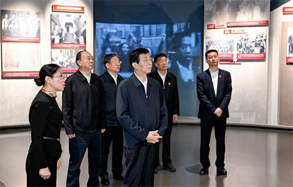 11月21日至23日,中共中央政治局常委、全国政协主席王沪宁在广东深圳、惠州调研。这是11月23日,王沪宁在惠州参观东江纵队纪念馆。新华社记者 殷博古 摄