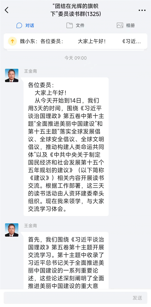 11月12日至14日,市政协人口资源环境和建设委员会围绕“全面推进美丽中国建设”和“落实全球发展倡议、全球安全倡议、全球文明倡议,推动构建人类命运共同体”两个主题,结合《中共中央关于制定国民经济和社会发展第十五个五年规划的建议》相关内容,组织全体委员开展读书学习。市政协副主席王金南作领学。