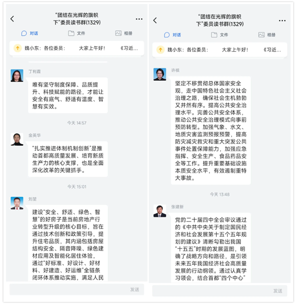 人口资源环境和建设委员会精心制定专题读书学习方案,设计思考题目引导委员交流讨论。注重发挥分党组成员、主任会议成员和相关领域专家型委员的引领作用,围绕学习主题进行接力导读,中共党员委员带头发言,全体委员深入开展学习交流,营造了良好的学习氛围。