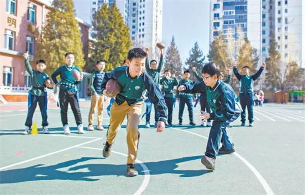▲北京林业大学附属小学依据学生特点,打破体育课传统框架,分男女生开设了橄榄球、健美操等课程。(资料图)潘之望 摄
