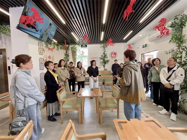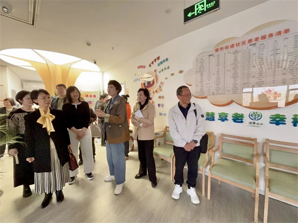 调研组成员先后实地考察了天华园一里社区养老服务驿站和郁金香社区养老服务驿站的室内智慧餐饮体验区、便民服务区、适老化生活体验区、康养区、托育智能照料区,现场体验陪伴机器人、康养理疗机器人等各类智慧康养产品,重点了解全流程智能化助餐服务、适老化家居设计、智能助老设备应用。